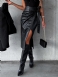 Saia Gravata Borboleta Cintura Alta Couro Pu Preto Outono Inverno Mulheres Bottoms