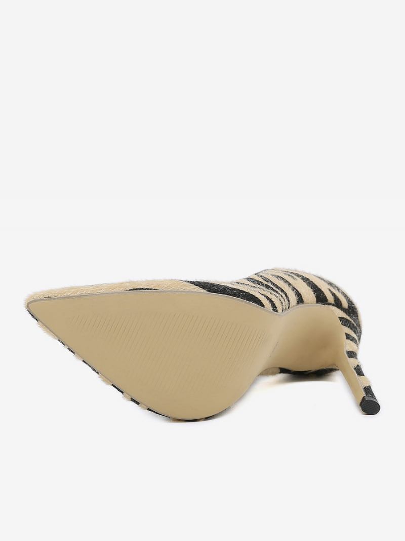 Salto Alto Feminino Com Estampa Zebra Bombas Agulha Cabelo Cavalo