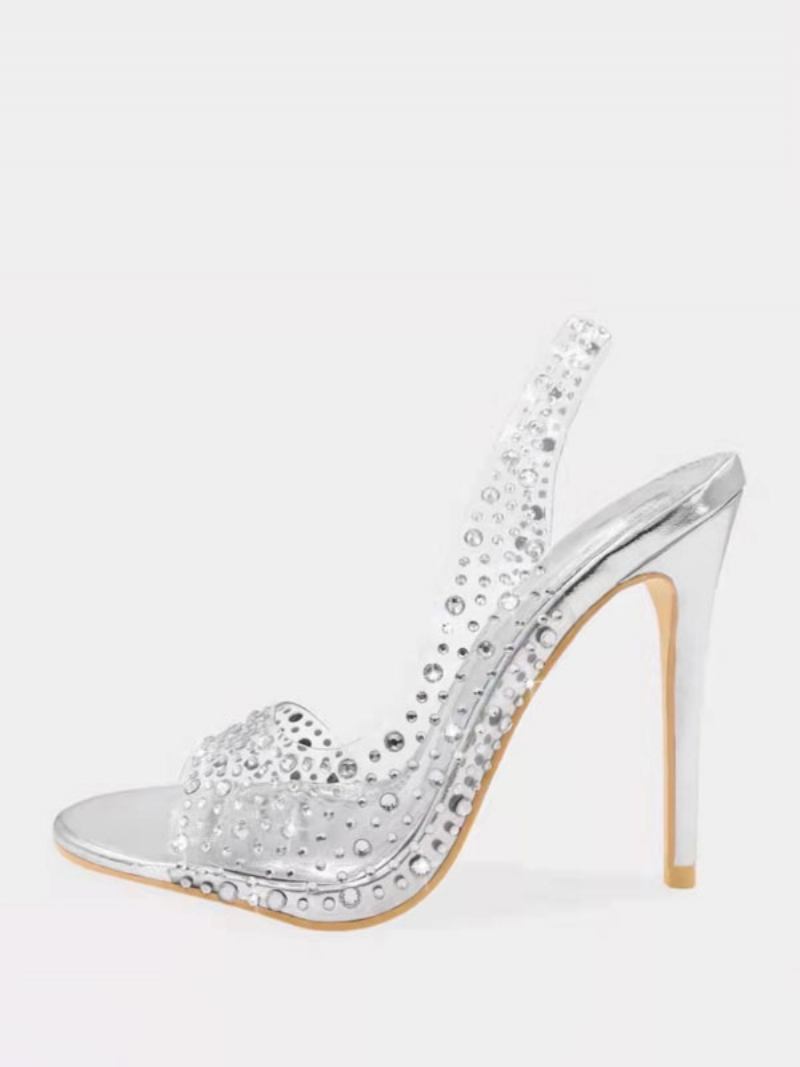 Salto Alto Feminino Strass Chique Bico Aberto Agulha Sapatos Baile