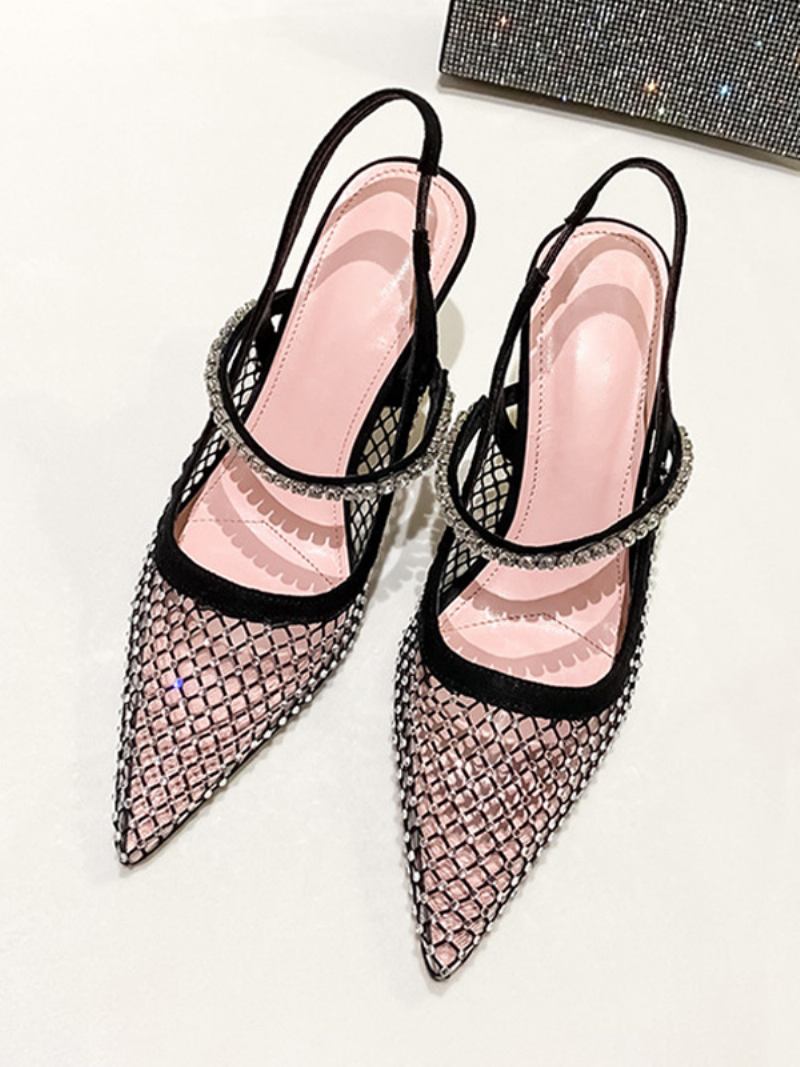Salto Estilingue Feminino Malha Preto Strass Agulha Sapatos Festa