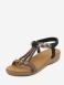 Sandália Plana Feminina Dedo Aberto Em Couro Pu Cravejado Com Alça T Sandálias Casuais