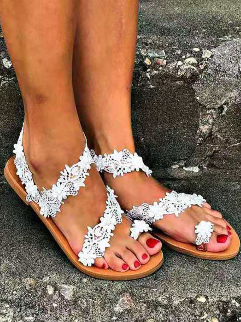 Sandálias Femininas Casamento Praia Planas Com Flores Bordadas