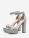 Sandálias Femininas Com Plataforma Strass E Tira No Tornozelo Salto Grosso Em Prata