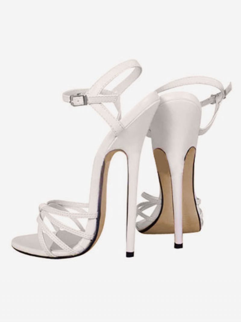 Sandálias Femininas Com Tiras Tornozelo Envernizadas Salto Alto 6 3/10 Polegadas