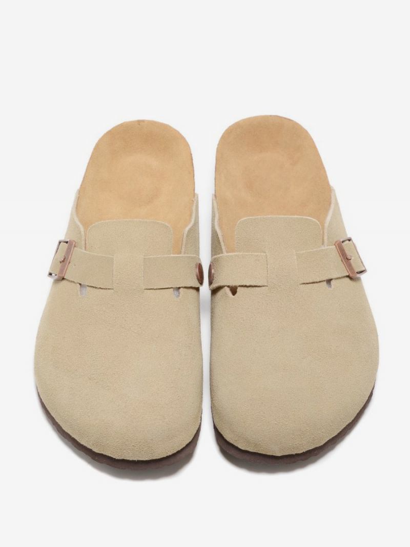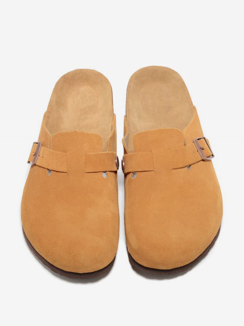 Sandálias Femininas Couro Bovino Com Bico Redondo Marrom Café