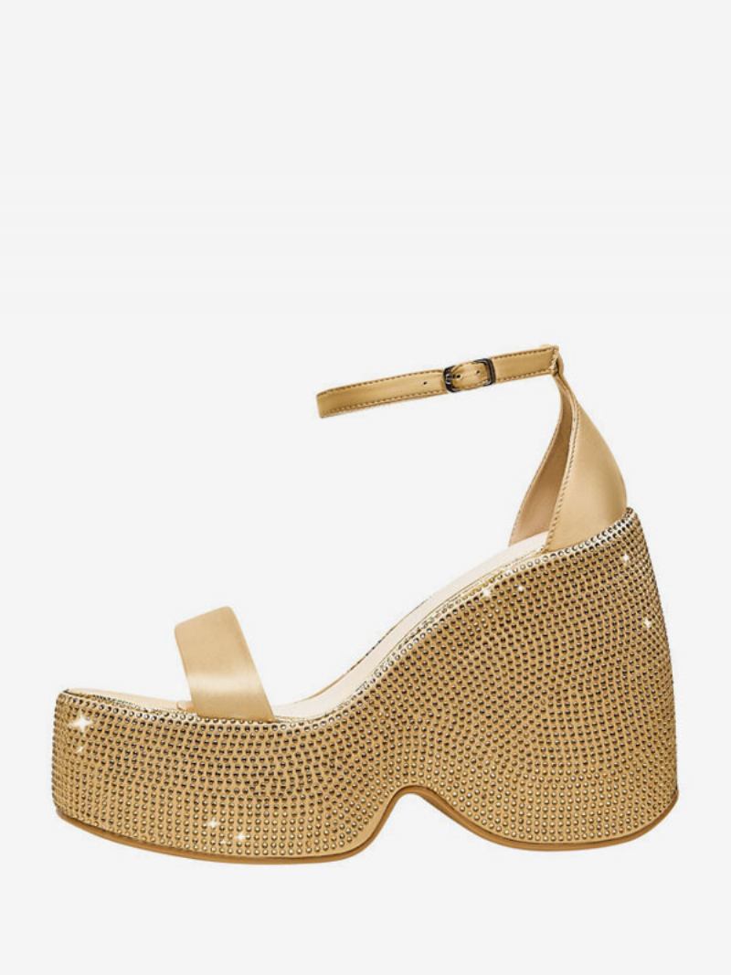 Sandálias Femininas Cunha Couro Pu Com Strass