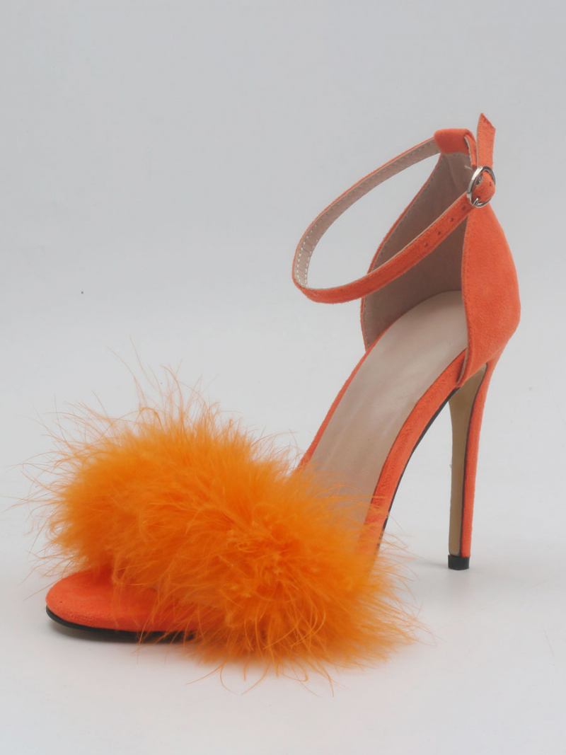 Sandálias Femininas Salto Agulha Com Bico Aberto E Detalhe Pele Sintética