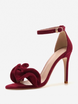Sandálias Femininas Salto Agulha Com Bico Quadrado E Em Couro Pu