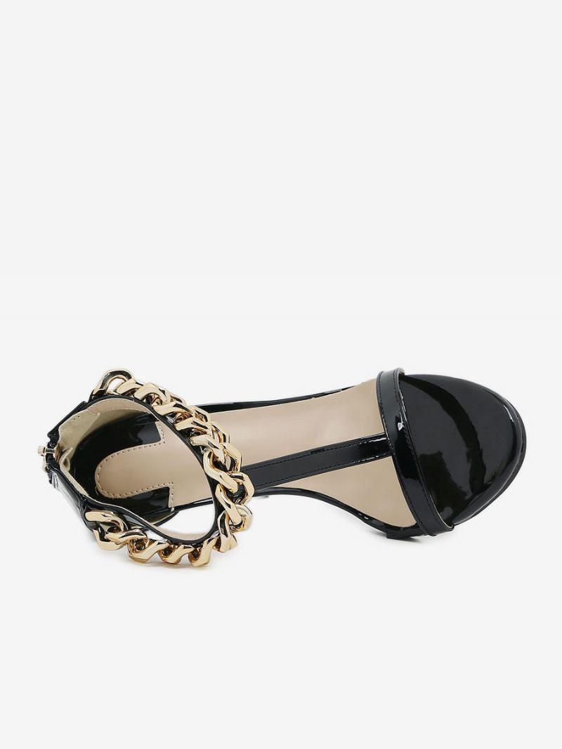 Sandálias Femininas Salto Agulha Com Bico Redondo E Couro Envernizado