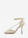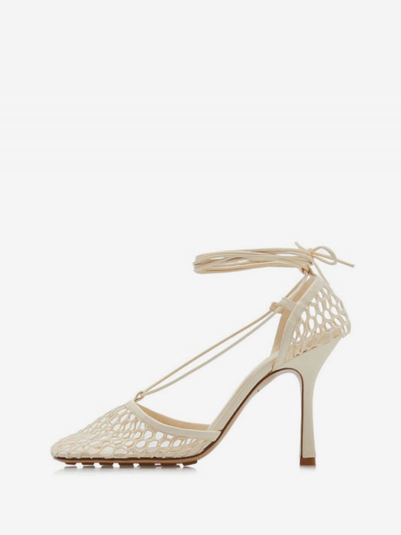 Sandálias Femininas Salto Agulha Com Cadarço Em Malha Verde E Bico Quadrado