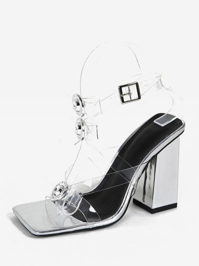 Sandálias Femininas Salto Alto Com Bico Quadrado E Grosso Em Pvc