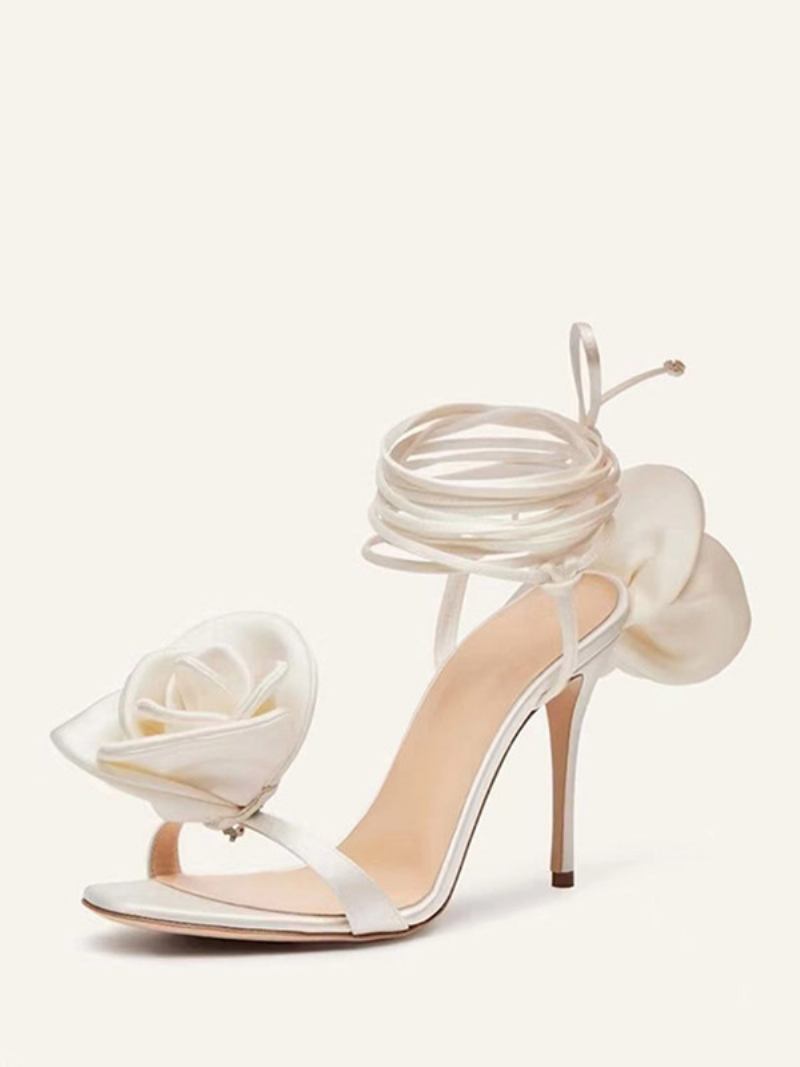 Sandálias Femininas Salto Alto Com Detalhe Flores Cetim Cadarço E Sapatos Festa