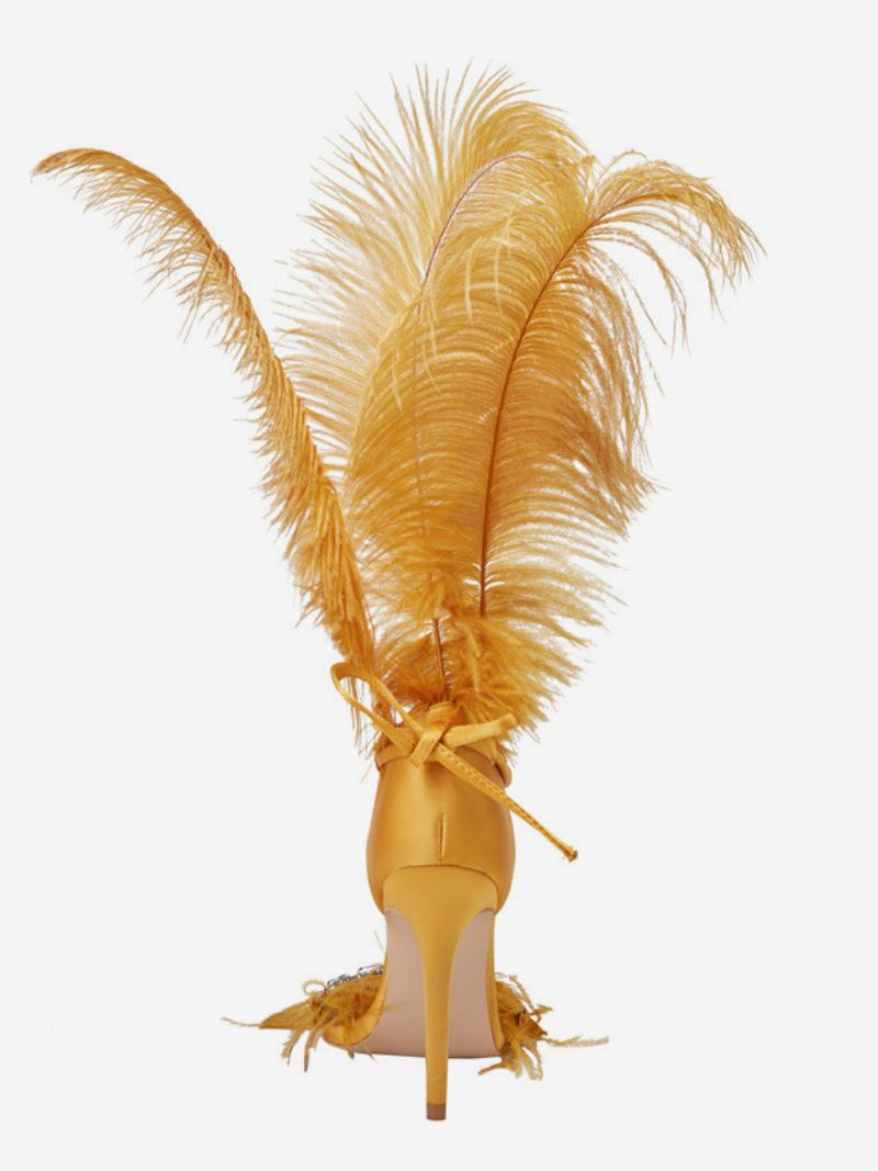 Sandálias Femininas Salto Alto Com Detalhe Penas Douradas E Strass Sapatos Festa Baile