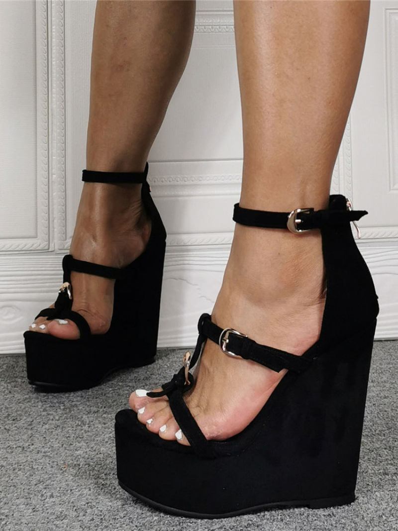 Sandálias Femininas Salto Alto Sexy Preto Micro Camurça Superior Aberto Dedo Do Pé Sapatos Tamanhos Grandes