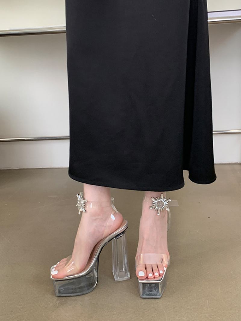 Sandálias Femininas Sexy Salto Alto Damasco Pvc Superior Aberto Dedo Do Pé 2 Polegadasstrass 4.7 Polegadas Sapatos