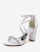 Sandálias Noiva Femininas Cetim Branco Sexy Dedo Aberto Strass Casamento