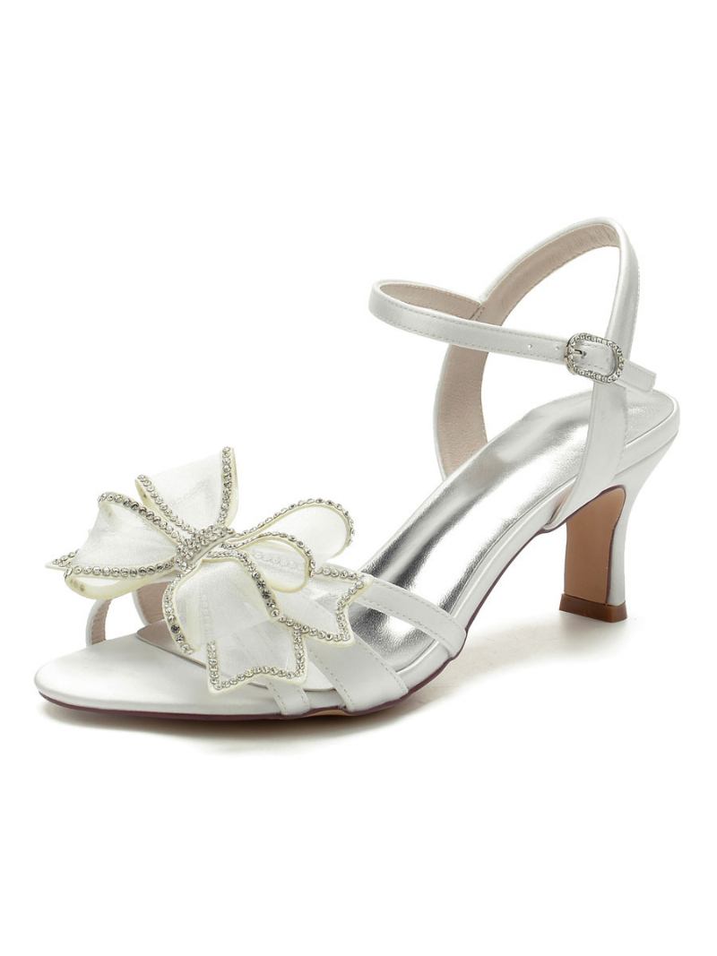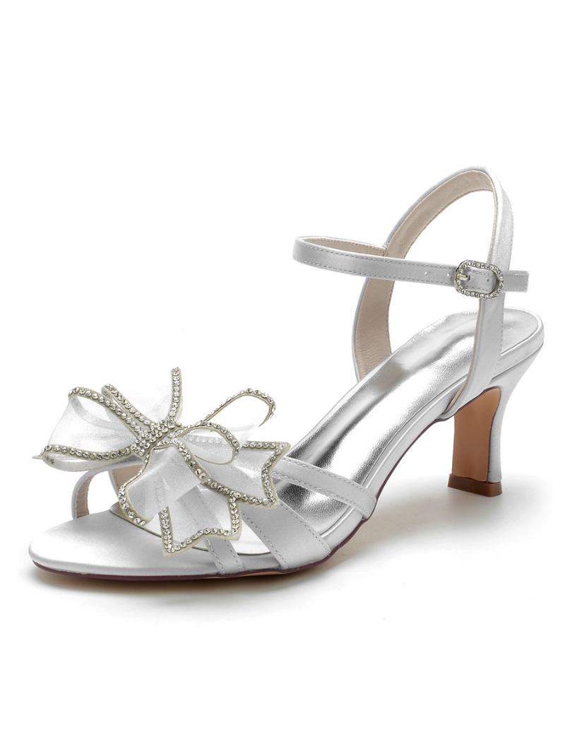 Sandálias Noiva Femininas Com Laço Cetim E Salto Grosso