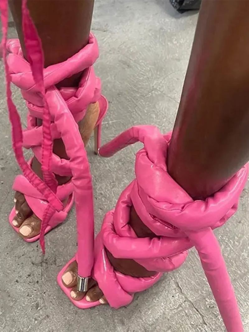 Sandálias Salto Alto Cinza Com Cadarços Gladiadoras Para Mulheres