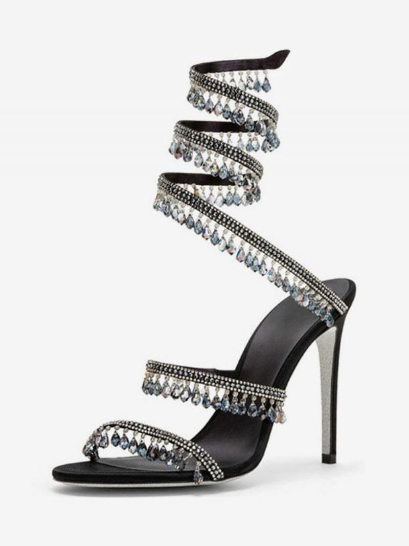 Sandálias Salto Alto Femininas Com Strass Dedo Aberto Cadarço E Sapatos Baile