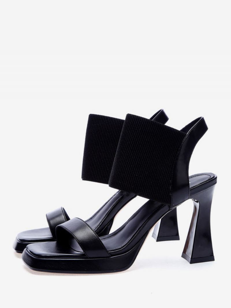 Sandálias Salto Feminino Com Bico Quadrado E Grosso Em Couro Pu