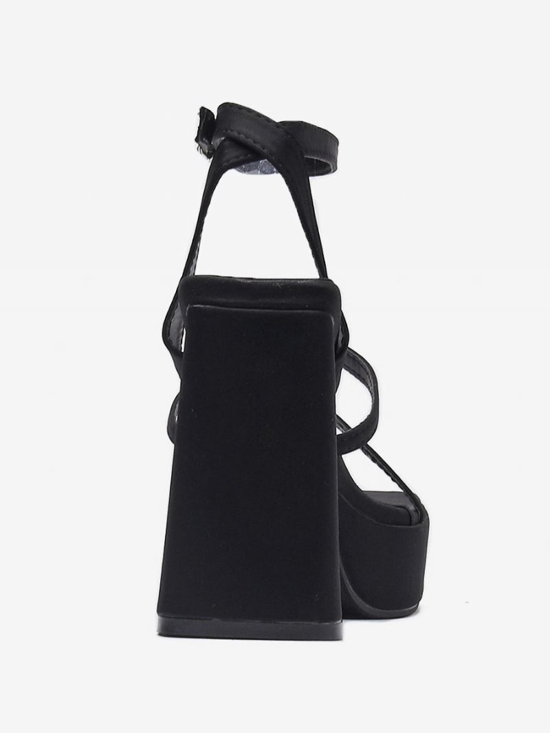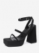 Sandálias Salto Feminino Com Bico Quadrado E Grosso Poliéster