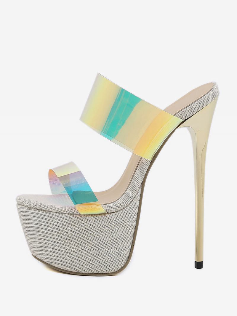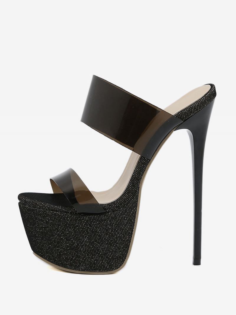 Sandálias Sexy Para Mulheres Com Plataforma Preta Bico Redondo Sapatos Transparentes 6.3 Polegadas