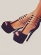 Sandálias Sexy Pretas Camurça Plataforma Peep Toe Tipo T Sandália Com Tira No Tornozelo Sapatos Femininos Salto Alto