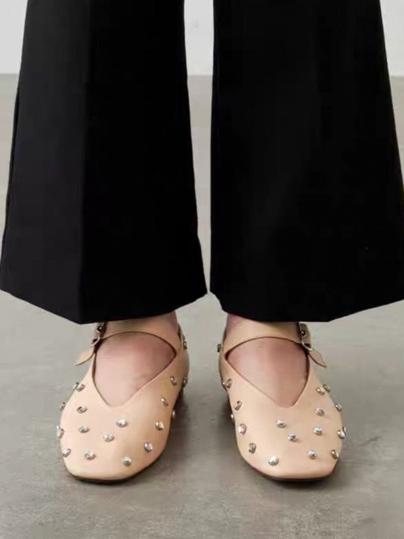 Sapatilhas Bailarina Pretas Femininas Com Strass Bico Redondo Em