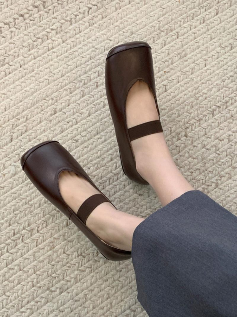 Sapatilhas Femininas Couro Pu Com Bico Quadrado