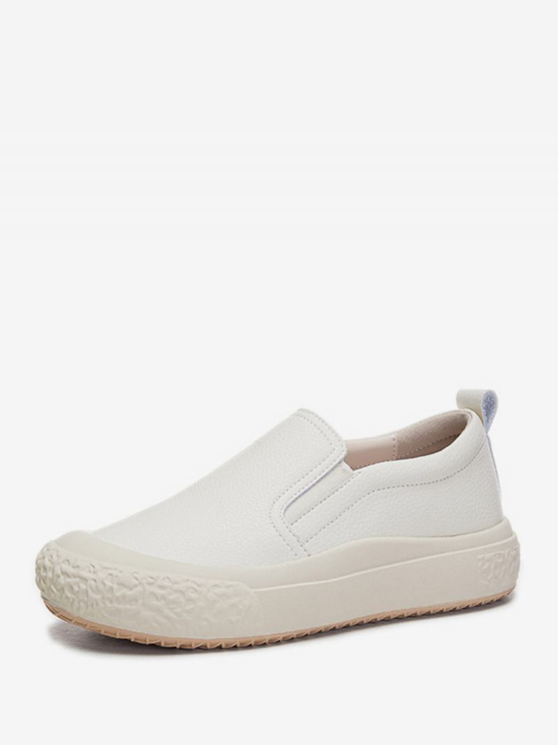 Sapatilhas Femininas Couro Pu Com Bico Redondo