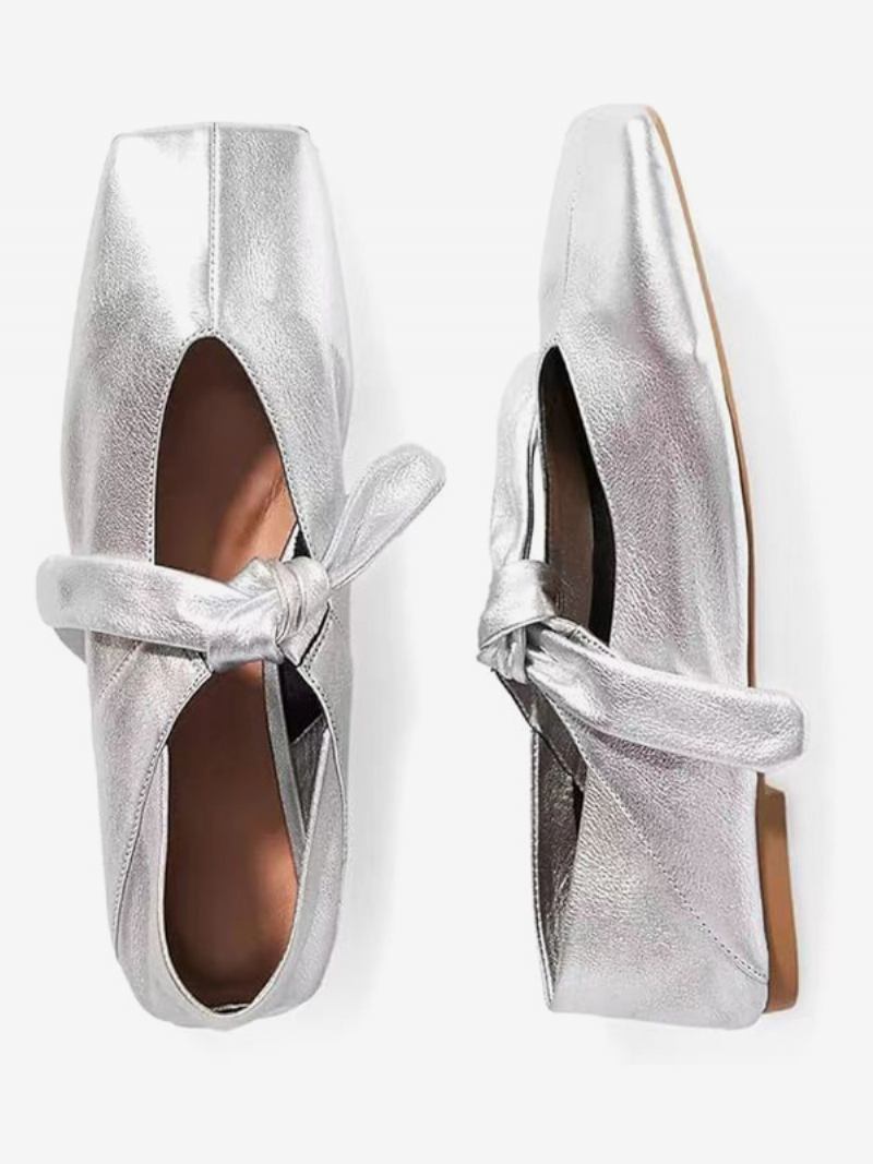 Sapatilhas Femininas Douradas Com Bico Quadrado E Detalhes Nó Metálico