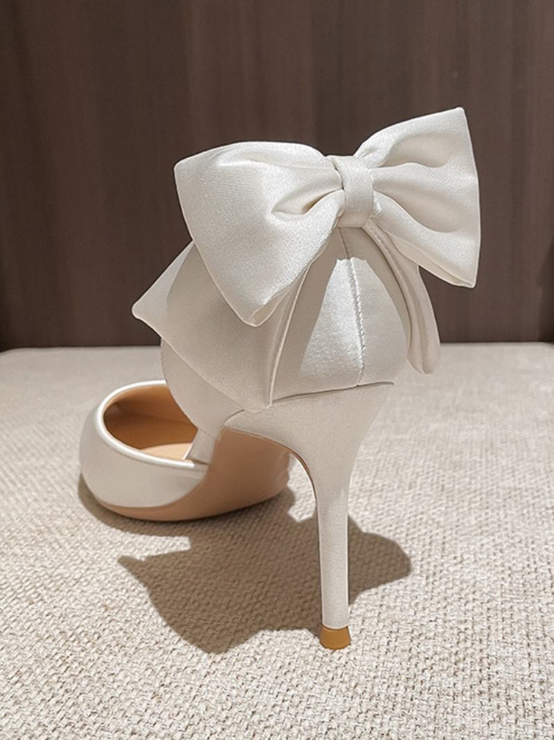 Sapatos Casamento Brancos Femininos Com Bico Fino E Detalhe Laço Bombas Salto Alto