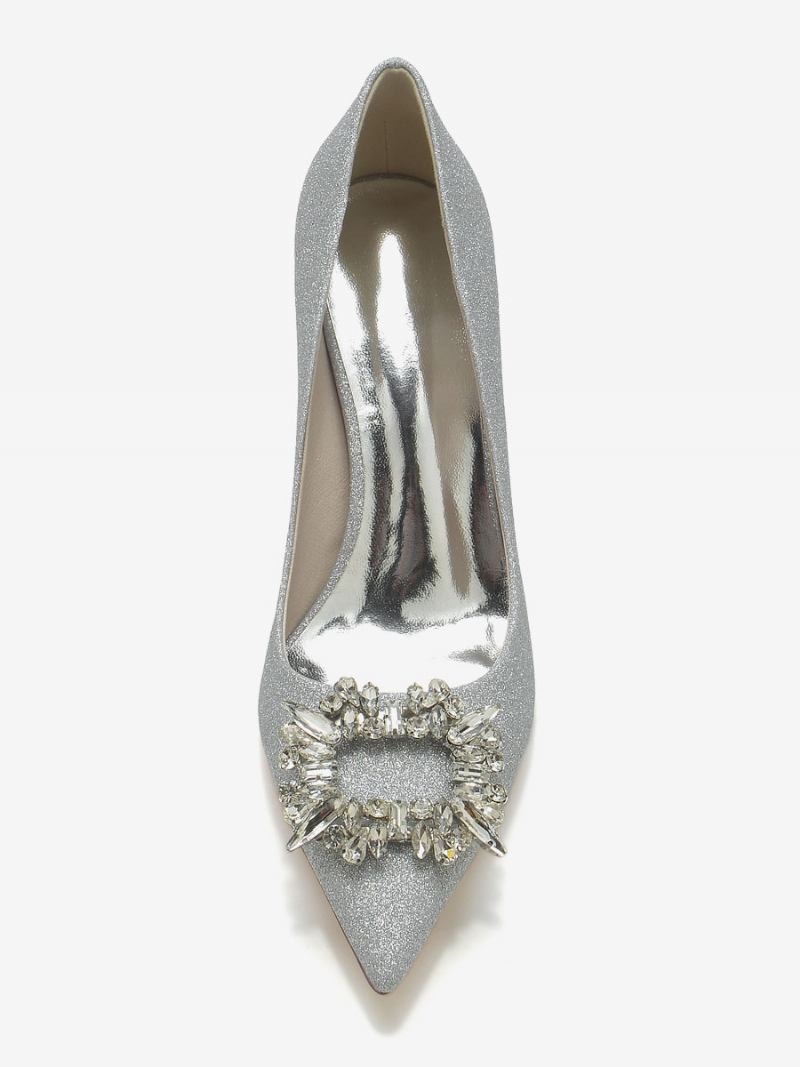 Sapatos Casamento Feminino Bombas Noiva Pano Lantejoulas Strass Bico Fino