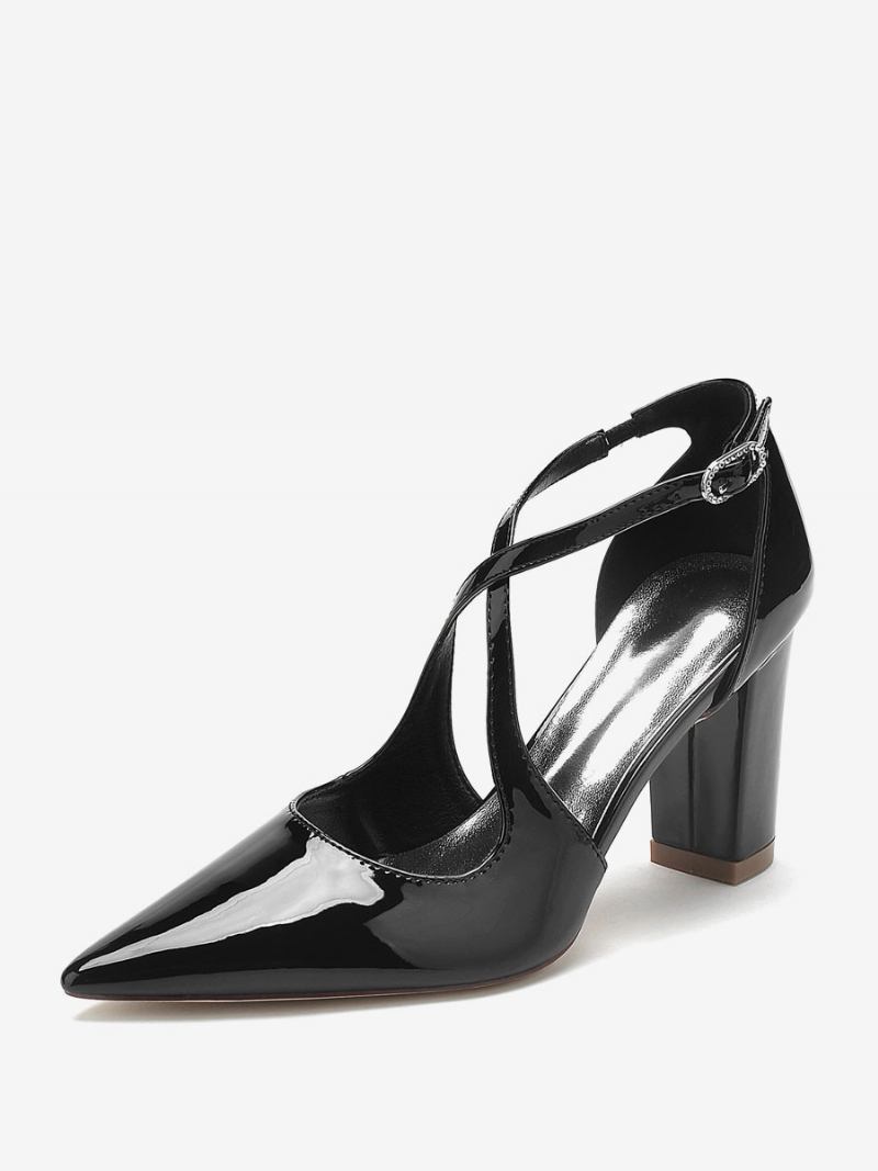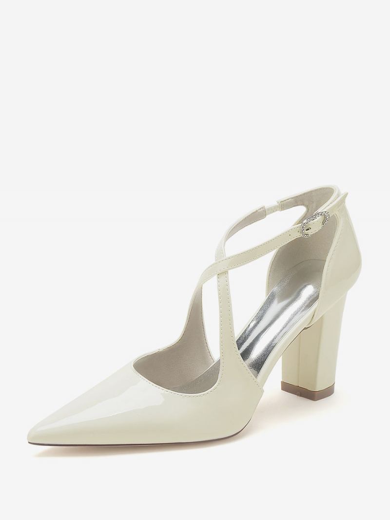 Sapatos Casamento Femininos Bombas Noiva Patente Pu Dedo Apontado Superior