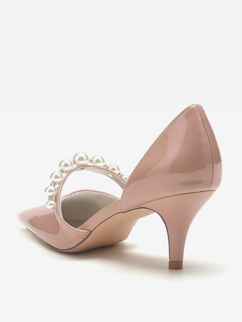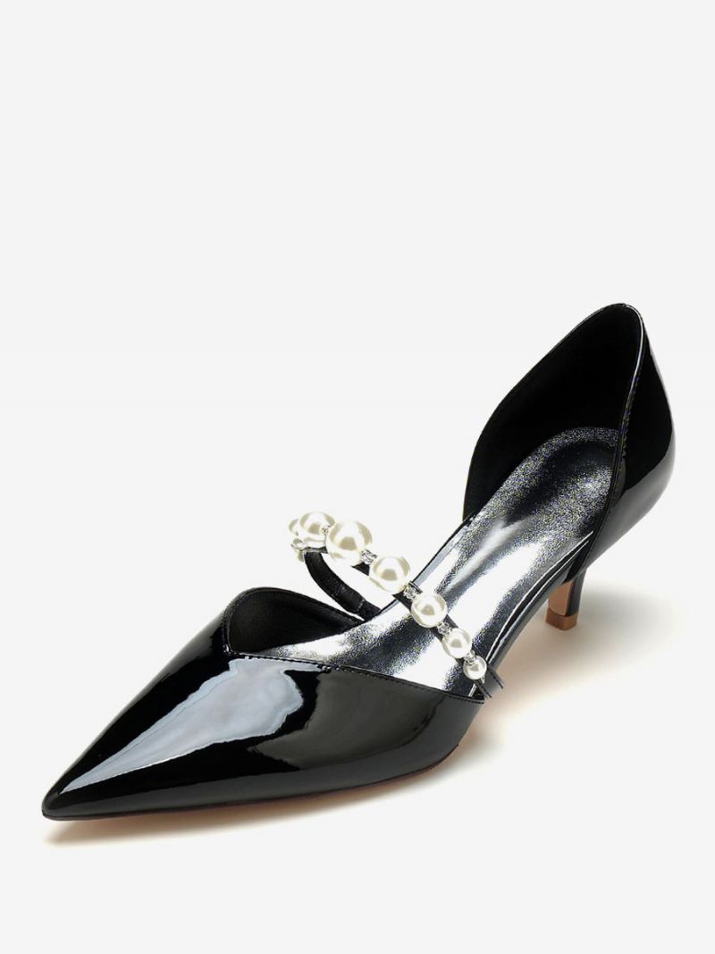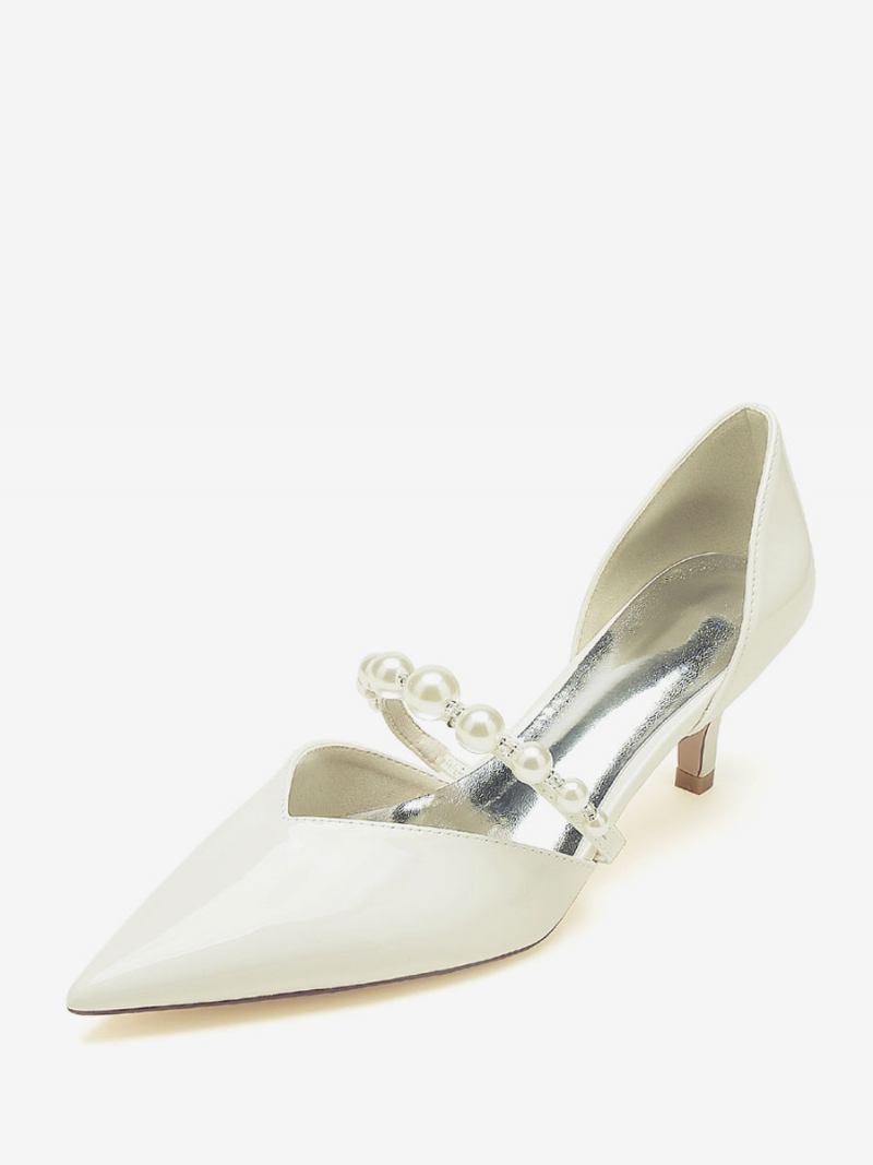 Sapatos Casamento Femininos Bombas Noiva Patente Pu Pérolas Bico Fino