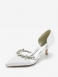 Sapatos Casamento Femininos Bombas Noiva Seda E Cetim Bico Fino Strass Deslizamento Em Salto Gatinho