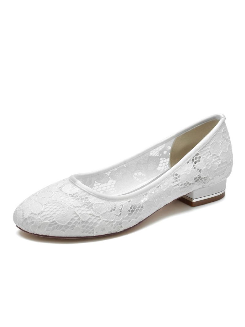 Sapatos Casamento Femininos Bordados Renda Bico Redondo Noiva Planos