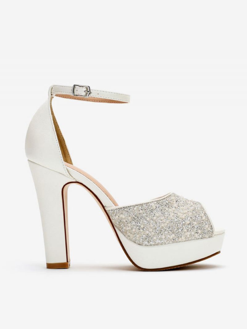 Sapatos Casamento Femininos Com Glitter Couro Pu Peep Toe Pérolas Salto Alto Bombas Noiva
