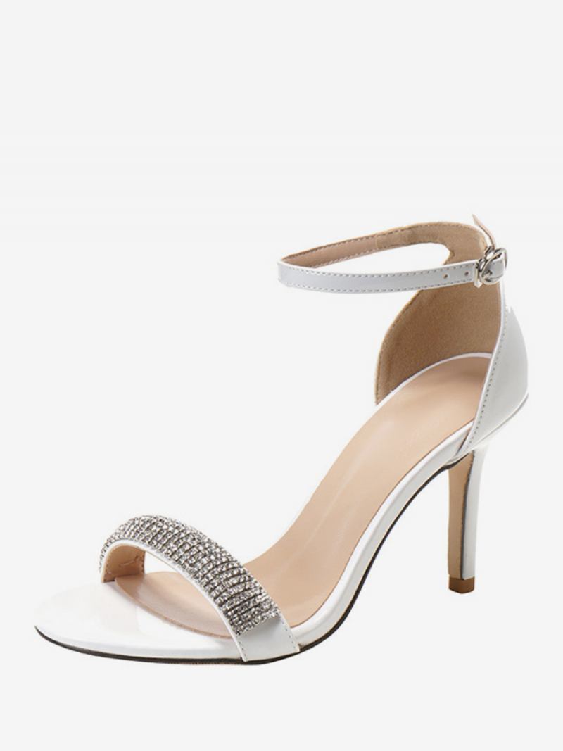 Sapatos Casamento Femininos Dama Honra Couro Pu Com Strass Dedo Aberto