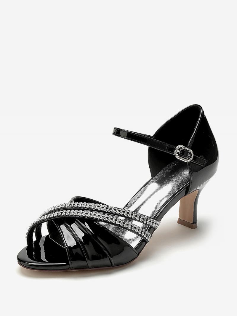 Sapatos Casamento Femininos Mãe Da Noiva Patente Pu Superior Aberto Strass 2.6 Polegadas