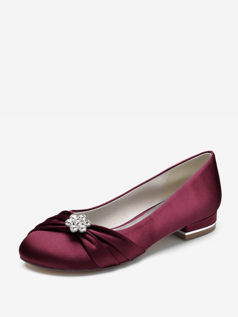 Sapatos Casamento Femininos Planos Cetim Com Bico Redondo E Strass Para Mãe Da Noiva