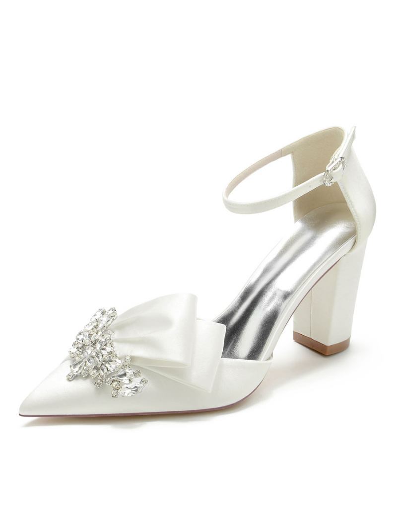Sapatos Casamento Femininos Strass Cetim Bico Fino Salto Grosso Noiva