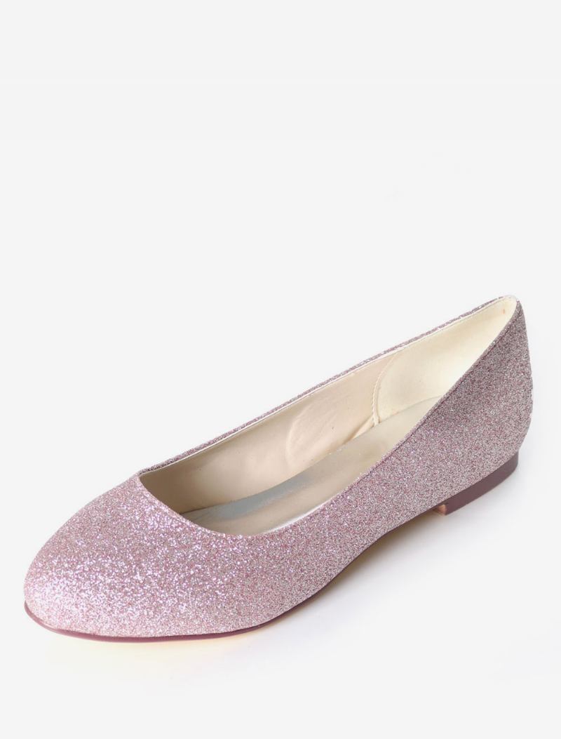 Sapatos Casamento Prateados Com Glitter Redondo Bico Deslizante Em Dama Honra Femininos Sapatilhas Balé