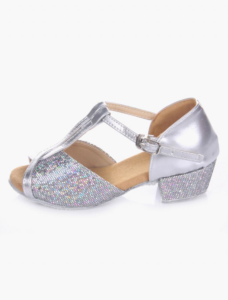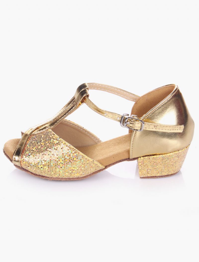 Sapatos Dança Latina Femininos Loiro Peep Toe Tipo T Sola Macia Salão Para Crianças