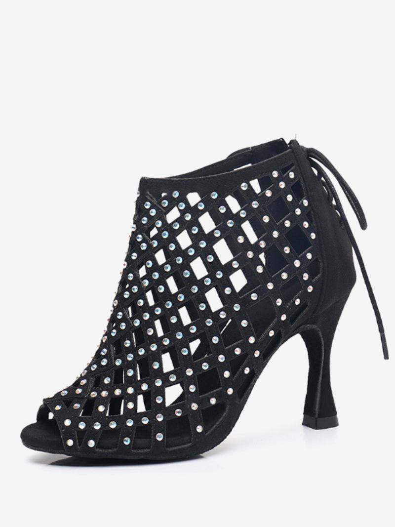 Sapatos Dança Latina Femininos Micro Camurça Superior Prata Dedo Do Pé Redondo Strass
