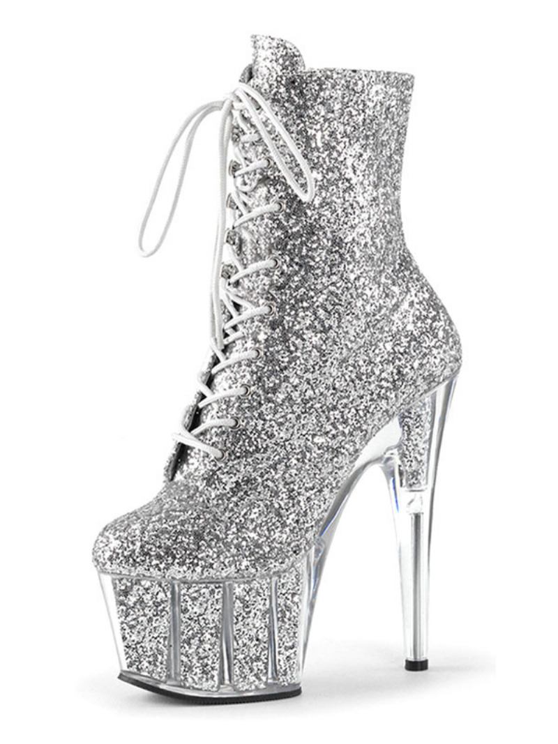 Sapatos Dança Pólo Feminino Glitter Rendas Até Botas Tornozelo Sexy Plataforma Salto Agulha