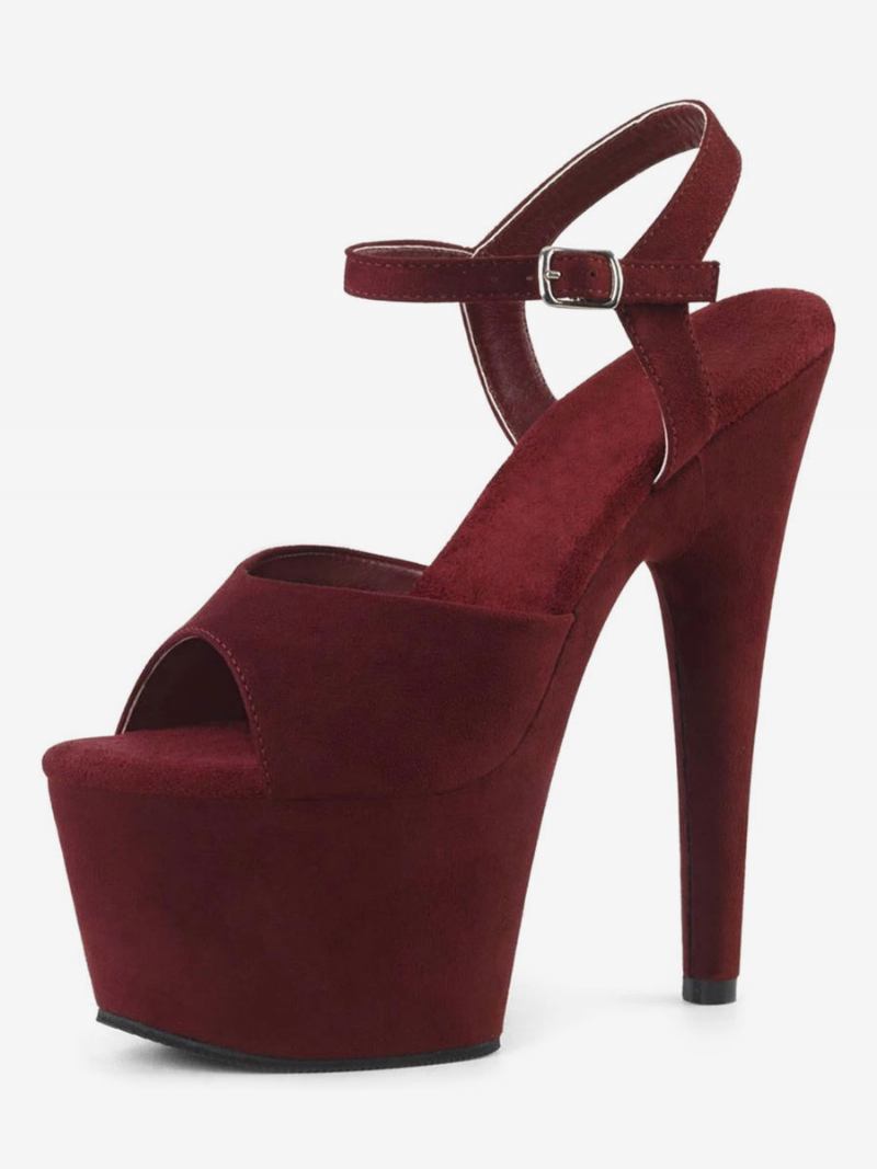 Sapatos Dança Pólo Feminino Sandálias Sexy Couro Preto Peep Toe Monge Cinta Stripper