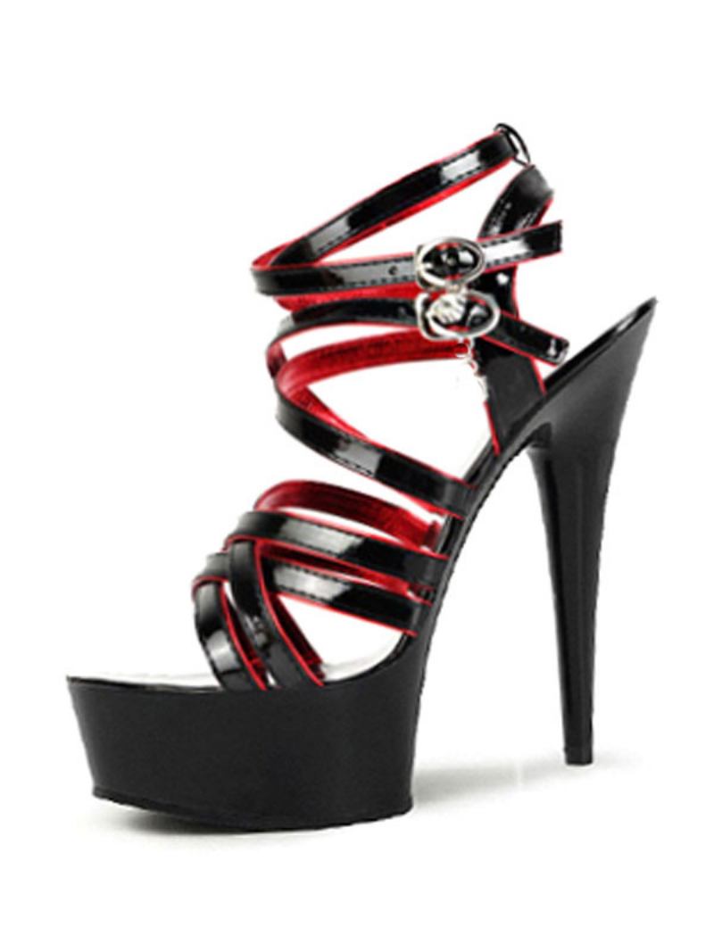 Sapatos Dança Pólo Feminino Sandálias Sexy Preto Dedo Do Pé Aberto Couro Tiras Tornozelo Cinta Salto Alto Stripper