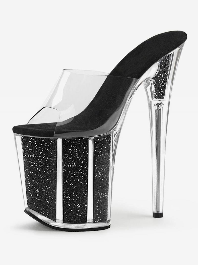 Sapatos Dança Pólo Sandálias Sexy Para Mulheres Couro Rosa Peep Toe Plataforma Transparente Chinelos Stripper