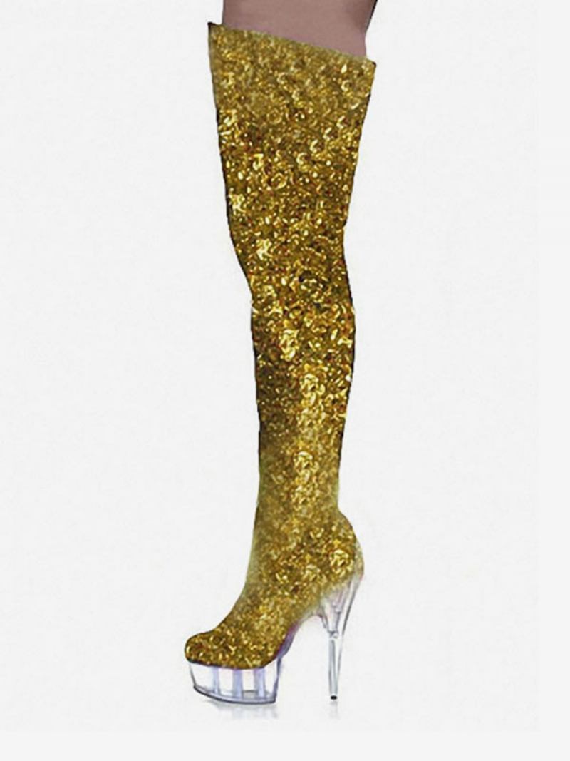Sapatos Dança Poste Femininos Brilhantes Stripper Plataforma Salto Agulha Sobre O Joelho Botas
